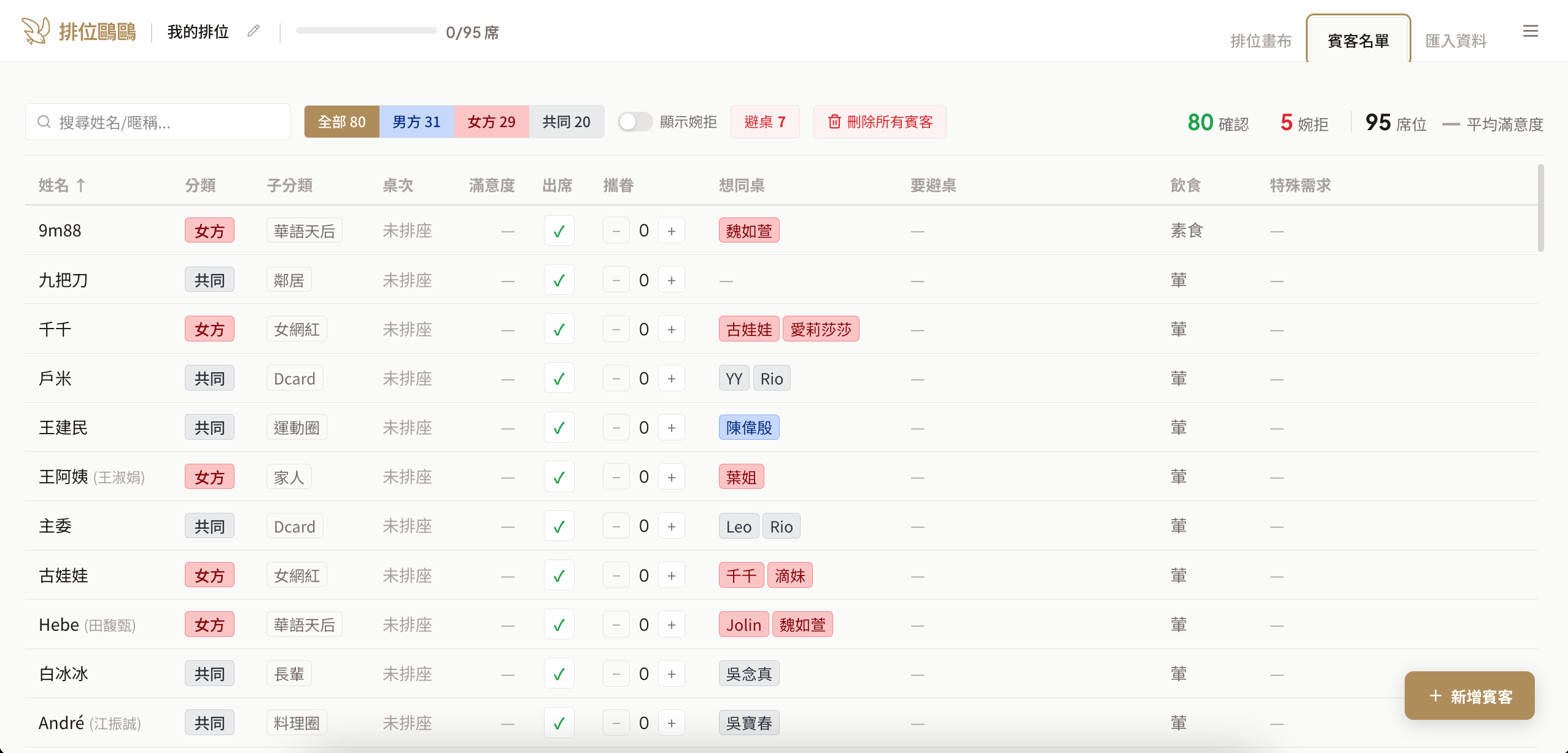 想看看你的賓客名單排起來長什麼樣?👉 免費體驗看看